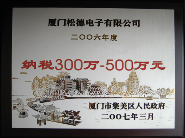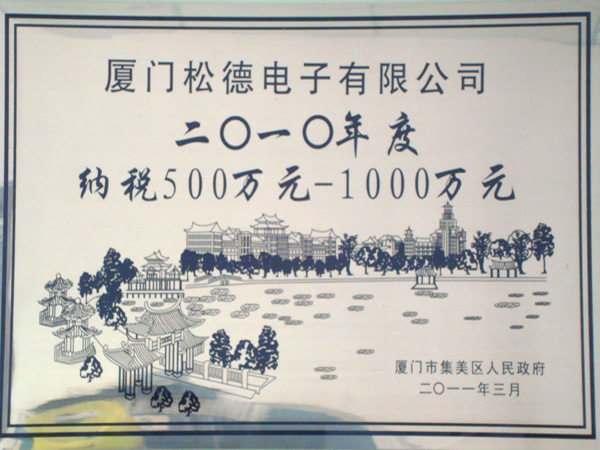 ●公司从2004~2013年连续10年被厦门市集美区评为“纳税大户”。