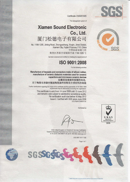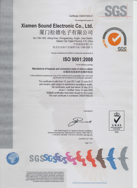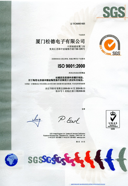 ● 公司取得IS09001:2008版质量管理体系认证证书(SGS UKAS证书)。